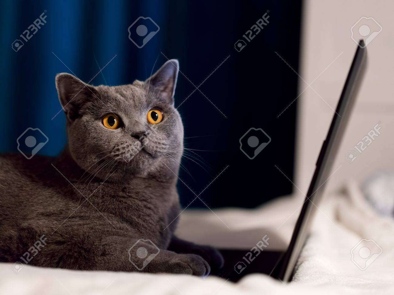 Télécharger gratuitement Chat Britannique Shorthair Travaillant Sur Un Ordinateur Portable