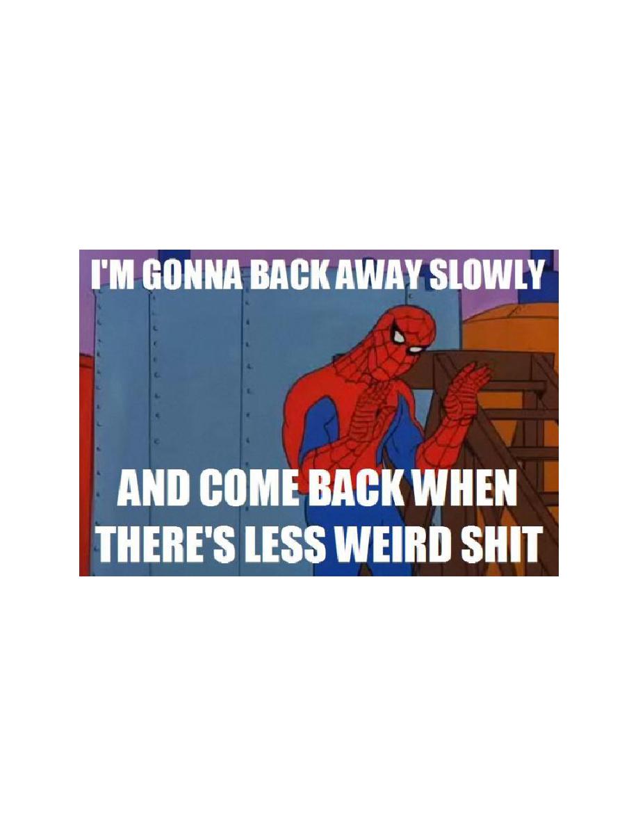Ok i m just gonna back away slowly by ohgody a member of the internet s largest humor community. I m gonna back away slowly and come back when there s less weird shit. Discover ideas about reaction pictures.Téléchargement gratuit Back Away Slowly 60 S Spider Man Know Your Meme