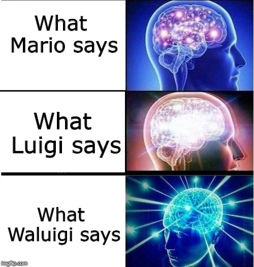 What does mario bros say meme luigi says memes compilation. About the super mario world tv series mama luigi is a youtube poop deviantart meme based upon the final cartoon of the super mario world cartoons which originally aired in 1991. Both like green stuff both begin with the letter l and both get heavily friendzoned by the ruling princess.Avoir Mario Bros On Consent Funny Memes Funny Images Mario Memes