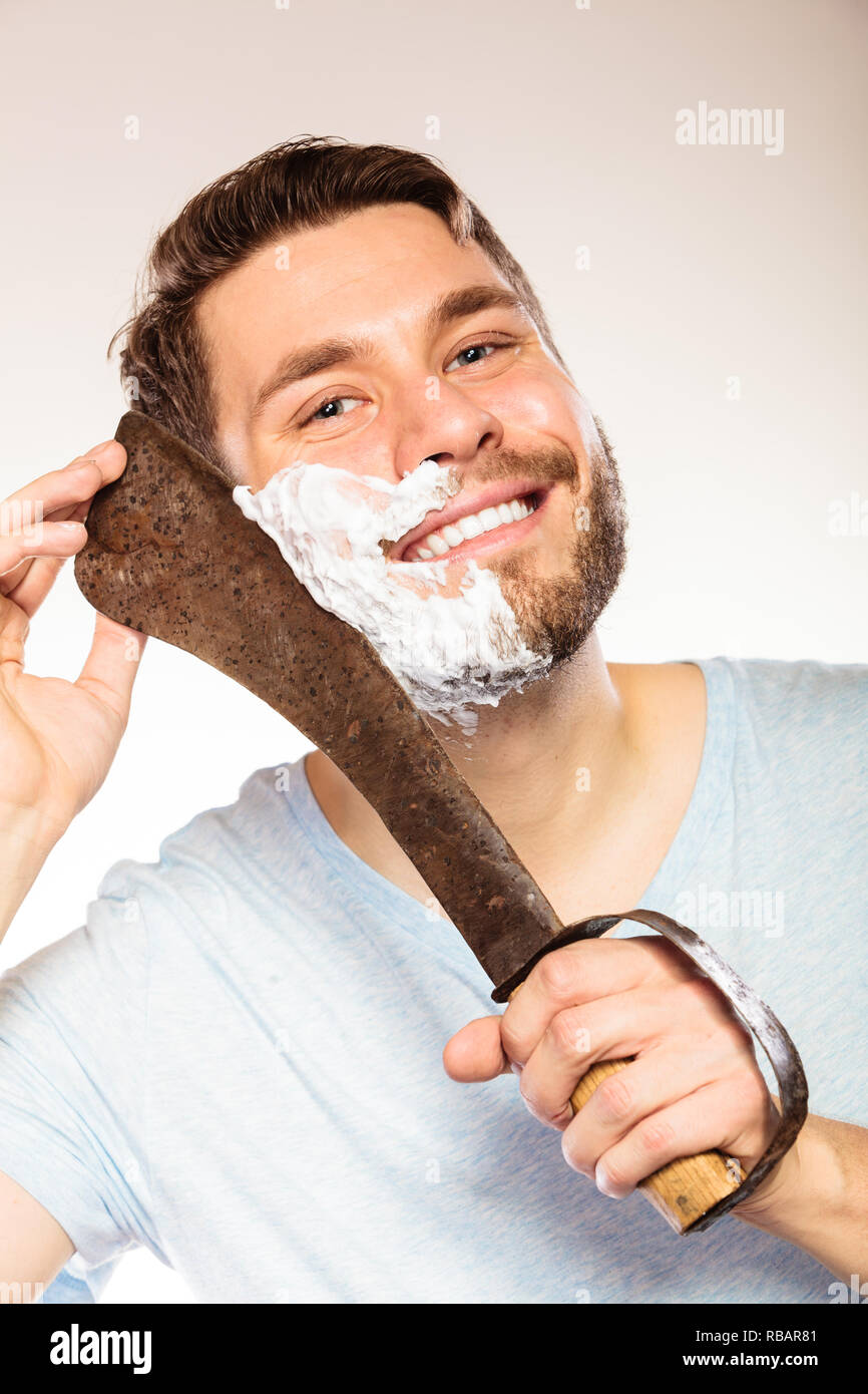 Scarica Gratis Young Man With Shaving Cream Foam On Half Of Face Having Fun With