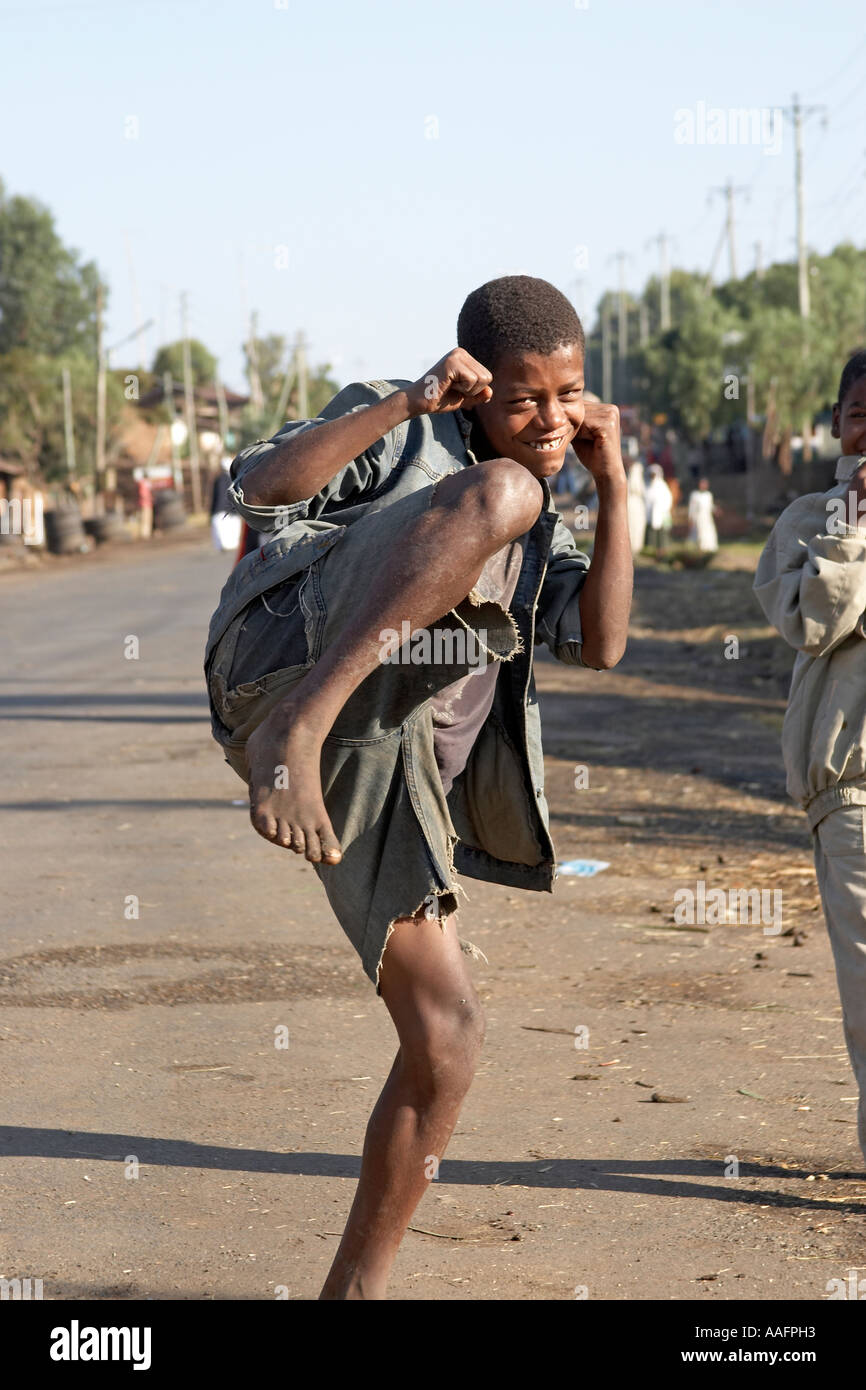 Télécharger gratuitement Jeune Garcon Faisant Karate Kick In Village De Dejen Pres De